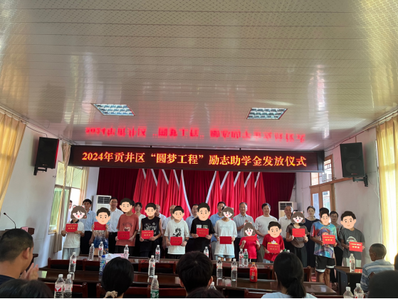 本次仪式,向贡井区24名受助大学新生和中小学生发放励志助学金。区教体局、区工商联、区总工会、区残联、区公益协会、成佳镇等相关单位负责同志和受资助学生及家长参加仪式。