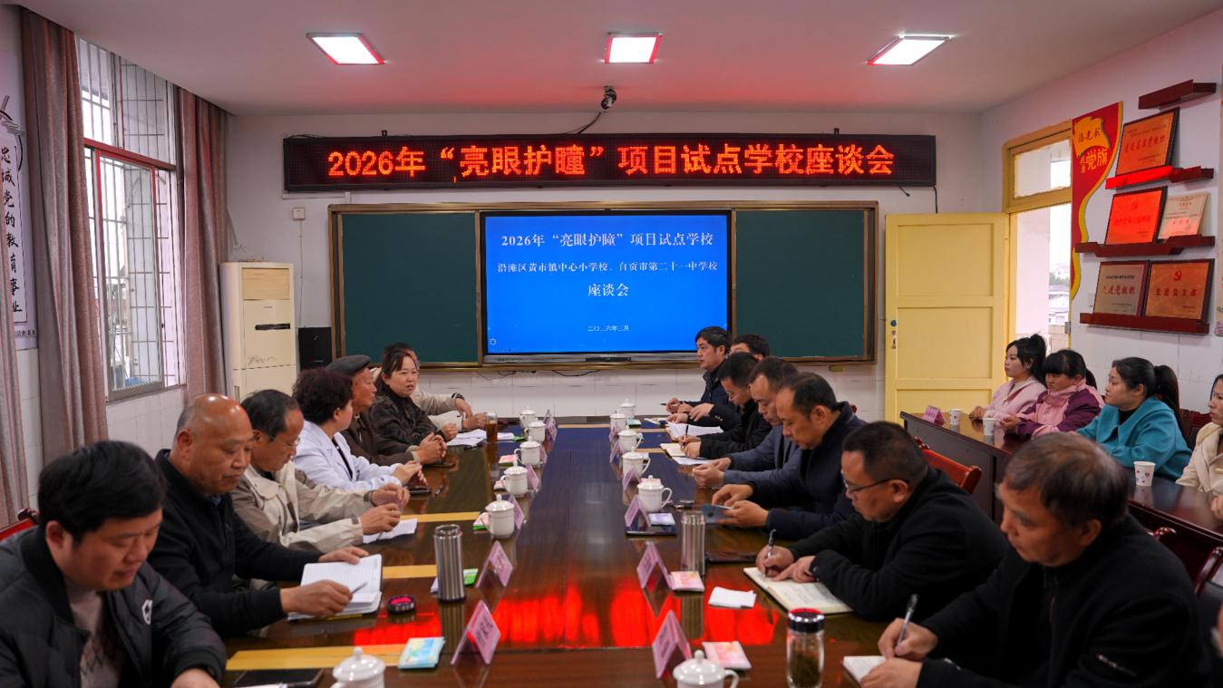 为扎实推进2026年“亮眼护瞳”项目试点工作开展,切实守护青少年儿童视力健康,3月19日上午,自贡市关心下一代基金会在沿滩区黄市镇中心小学校组织召开2026年“亮眼护瞳”项目沿滩区试点学校座谈会。市基金会、区关工委、区教体局、黄市镇相关负责人,自贡市第一人民医院眼科专业人员,家长代表参加会议。