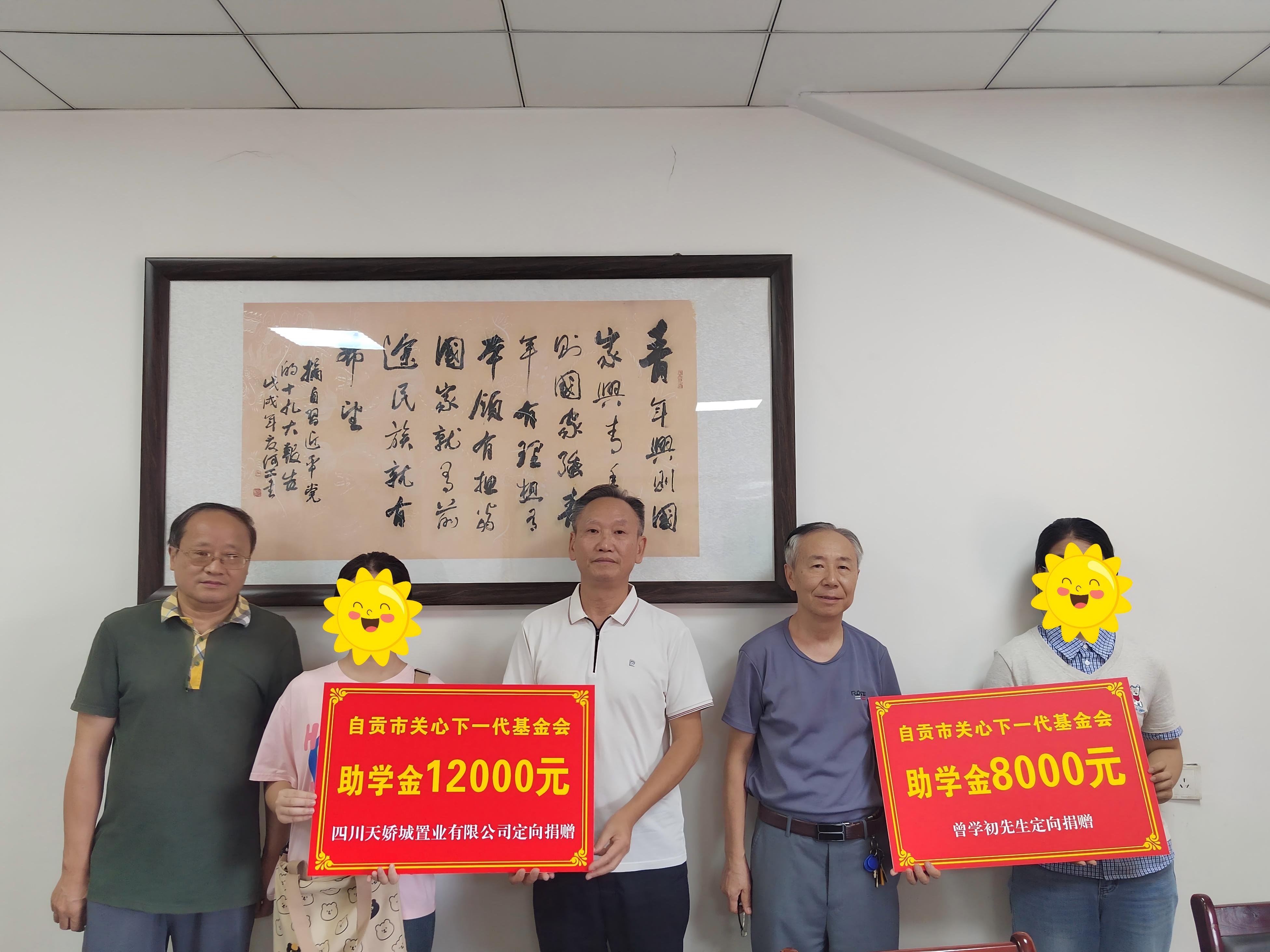 8月26日,自贡市关心下一代基金会召开2025年度定向助学金发放座谈会。市基金会理事长舒国兴、秘书长范为民、副秘书长朱德银出席会议,向两名受助学生发放定向助学金共计2万元。